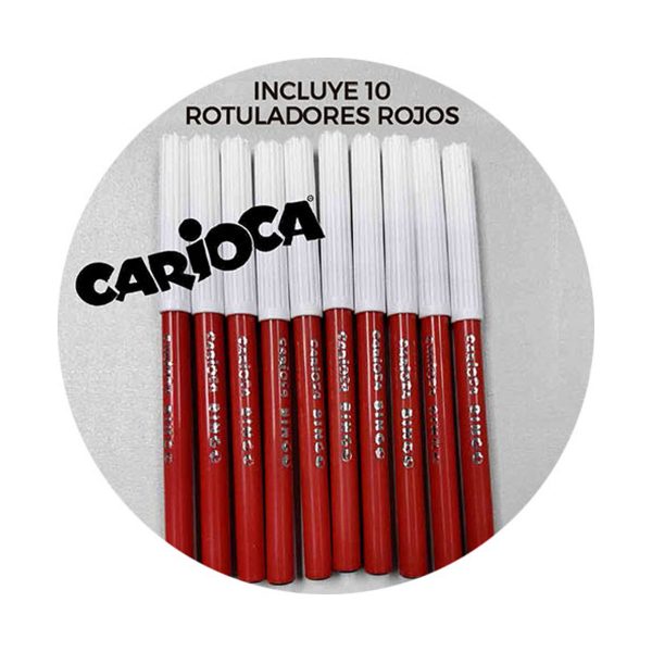 Incluye 10 rotuladores rojos Carioca.
